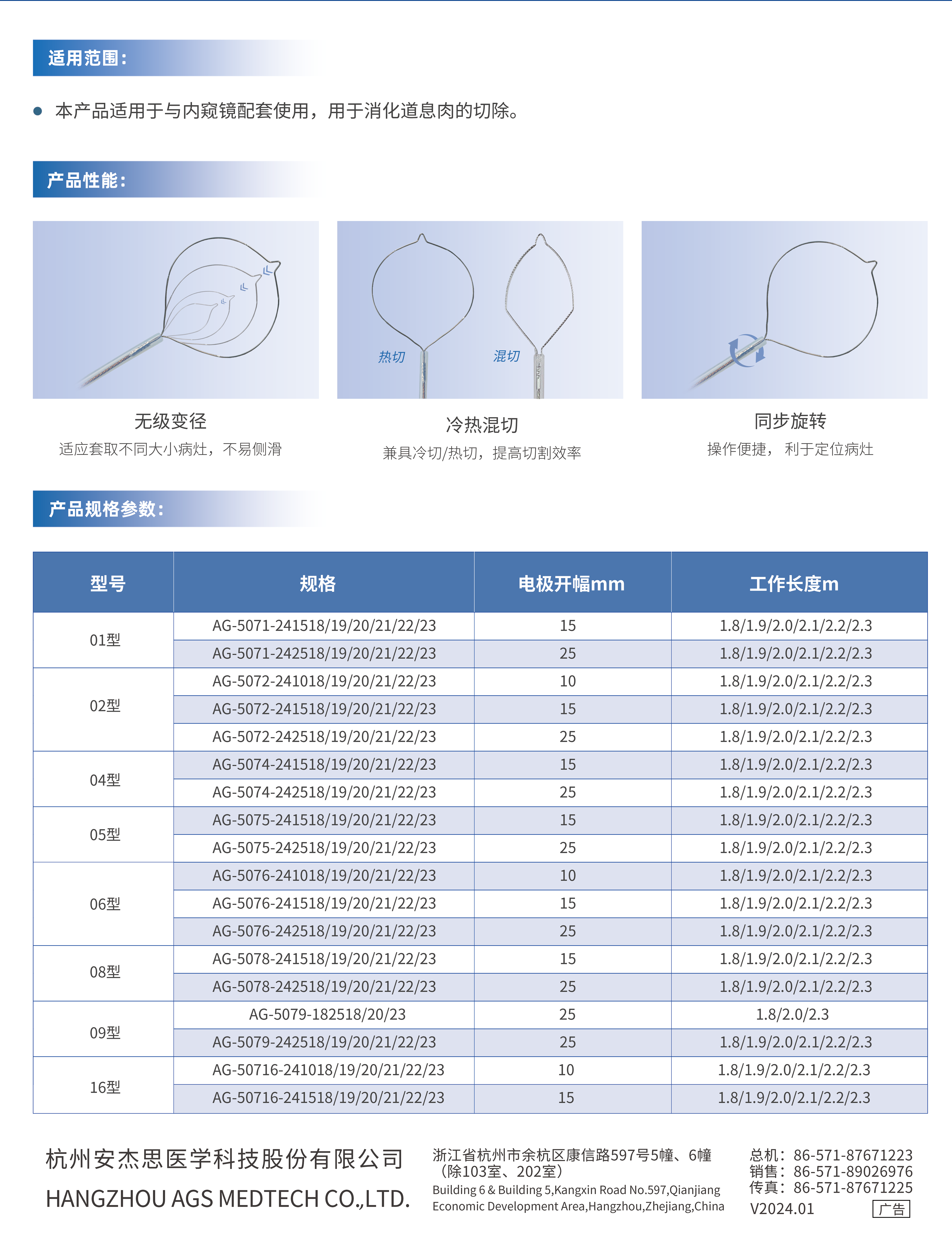 产品适用于与内镜和高频电发生器配套使用,用于消化道息肉的切除
